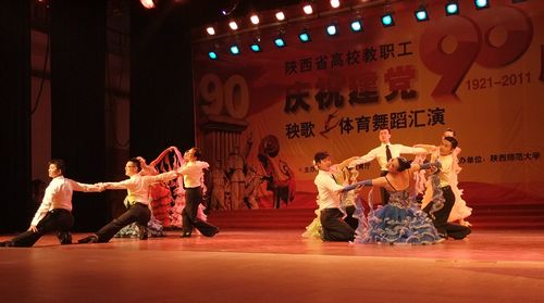 这次参加汇演的体育舞蹈表演节目,是由我院体育艺术系体育舞蹈教研室教师们牺牲课余时间,加班加点排练而成的,演出的成功为学院庆祝建党90周年献上了一份厚礼。
