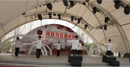 4月28日上午11时,2011西安世界园艺博览会在浐灞生态区广运潭隆重开园。作为此次盛会的重要活动之一——“青春为世园喝彩”陕西省大学生演出季同时开幕。开幕式上,我院学生“中国古典武艺”的精彩表演压轴出场,让在场观众领略了中国传统武艺的魅力与韵味,也将我院大学生奋发向上、朝气蓬勃的精神面貌淋漓尽致地展现出来。