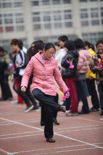 3月2日下午,阳光灿烂,我院第一田径场上人声鼎沸,全院女教职工300余人纷纷来到这里,参加为庆祝自己的节日——“三八”国际劳动妇女节而开展的系列活动之一,踢毽子比赛。