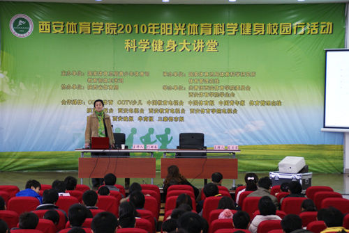 12月15日下午,由国家体育总局青少年体育司、教育部体卫艺司主办,国家体育总局体育科学研究所、体育管理在线共同承办,陕西省体育局协办的“2010年阳光体育科学健身校园行”活动在我院校园举行。本次活动以“走向操场,走到阳光下,积极参加体育锻炼”为主题,共分为健身知识展示、健身科学大讲堂、阳光体育展示三大部分。