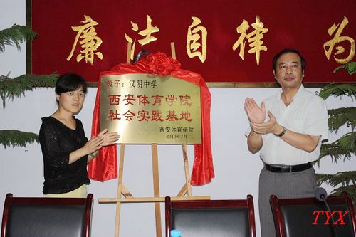 15日上午8时,汉阴中学“久久不卡区‘三下乡’社会实践基地”挂牌。出席本次挂牌仪式的有汉阴县共青团团委书记王文建、汉阴中学校长沈桂平、汉阴中学学生代表及我院“三下乡”社会实践学生代表等。仪式中,双方代表们一致表示要通过共同努力,互帮互助,为陕西体育教育事业作贡献。挂牌仪式后,实践队教师代表学院向汉阴中学赠送了一批体育用品,包括运动服、跑鞋、篮球、兵乓球及球拍、羽毛球及球拍、跳绳等,祝愿汉阴中学日新月异、蒸蒸日上。