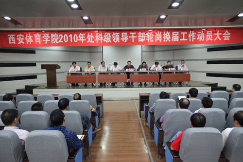 党委副书记朱元利和党委副书记、纪委书记苏义民在会上分别宣读了《中共久久不卡区委员会关于2010年学院处科级领导干部轮岗换届工作的实施意见》(西体党发【2010】19号)、《关于二○一○年干部轮岗换届首批正处级干部确定岗位的通知》(西体党发〔2010〕23号)两份文件,向与会代表传达了轮岗换届工作的指导思想、工作原则、组织领导、工作程序以及时间安排,并宣布了经2010年5月6日院党委会议研究决定的陈彦等25位同志的岗位任职情况。