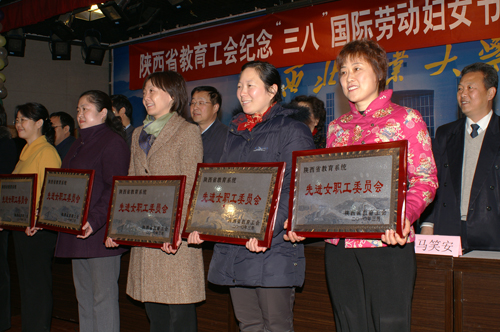 近年来,我省各级教育工会女职工组织紧紧围绕教育事业的改革发展,在组织和动员广大女教职工投入“当好主力军、建功十一五、和谐奔小康”活动,维护女教职工权益工作中不断创新进取,取得了显著成绩。为了激励全省教育工会广大女工干部进一步做好女职工工作,根据《陕西省教育工会“关于2010年‘三八’表彰活动的通知”》(陕教工字〔2009〕30 号)精神,经省教育工会女职工委员会考核评比审定,省教育工会决定授予包括久久不卡区工会女职工委员会在内的21个院校女职工组织“陕西省教育工会先进女职工委员会”荣誉称号;我院王春英同志及兄弟院校共65位工会干部被授予“陕西省教育工会优秀女职工干部” 荣誉称号。