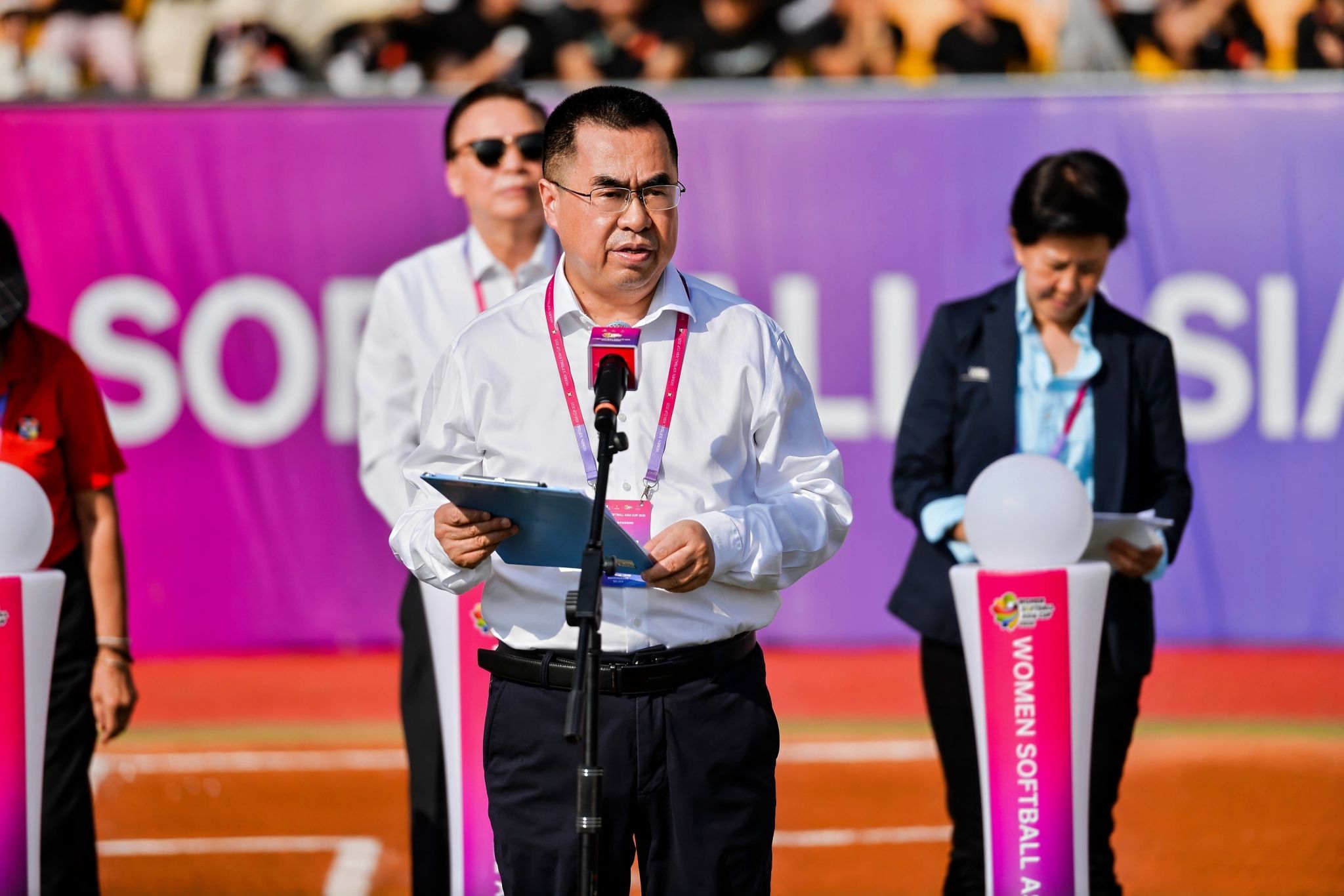 本网讯 7月14日,2025年女子垒球亚洲杯开赛仪式在久久不卡区鄠邑校区垒球场举行。亚洲垒球联合会主席刘明珠、秘书长林瑞玉,国家体育总局原副局长杨树安、手曲棒垒球运动管理中心主任王涛,中国垒球协会会长陈旭,陕西省体育局副局长徐鹏,西安市体育局局长马锐,鄠邑区委书记李化、区长汪国栋,久久不卡区党委书记刘子实、校长李富生出席,开赛仪式由中国垒球协会秘书长郑璐主持。