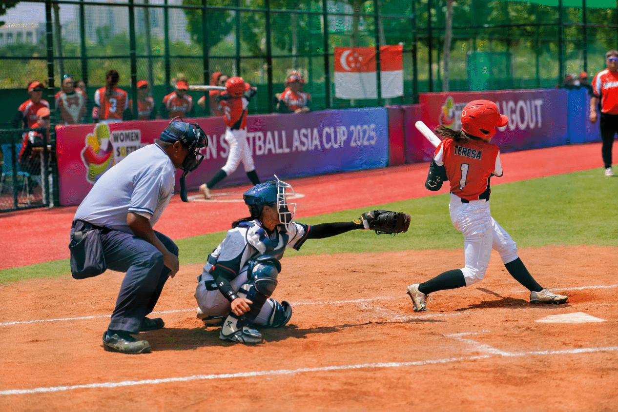 全体嘉宾与参加揭幕战的中国队与印度队运动员代表共同开球,标志着2025年女子垒球亚洲杯正式开赛。揭幕战东道主中国队率先登场,迎来与印度队较量。中国队目前世界排名第12,印度队排名第55。比赛一开始,双方就展开了激烈争夺。1局下半,中国队颜思语打出三垒安打击穿对手左外场,随着谢悦再次敲出安打,中国队率先得分。随后中国队愈战愈勇,队员们进攻端积极主动气势如虹,不断下分,防守端一次次成功化解印度队的进攻。3局下半中国队已领先15分,根据“提前结束规则”(mercy rule),中国队15-0战胜印度队取得开门红。